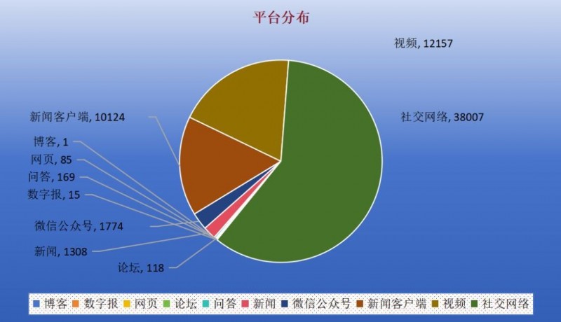 从整体上看,有关“桃李面包”的舆情主要集中在“社交网络”平台,“社交网络”平台舆情量共38007条,占总量的59.6%。其次为“视频”平台(共12157条,占19.1%)以及“新闻客户端”(共10124条,占15.9%)。