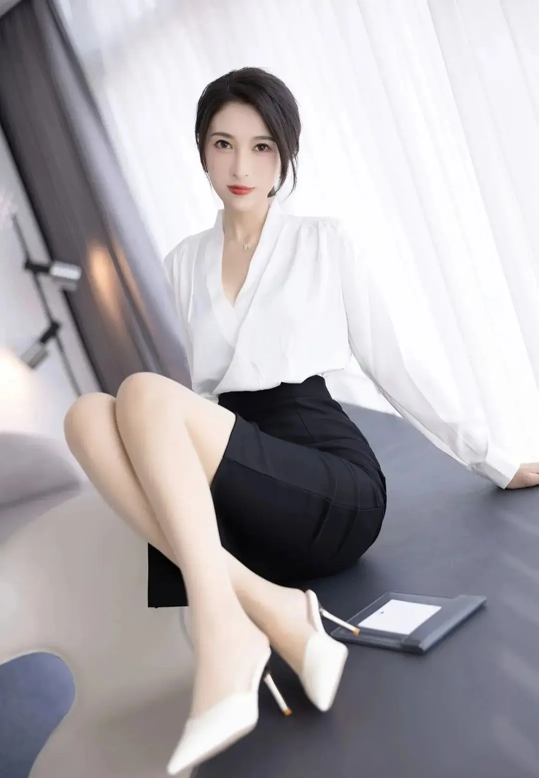她衣着素雅,但难掩绝代风情。