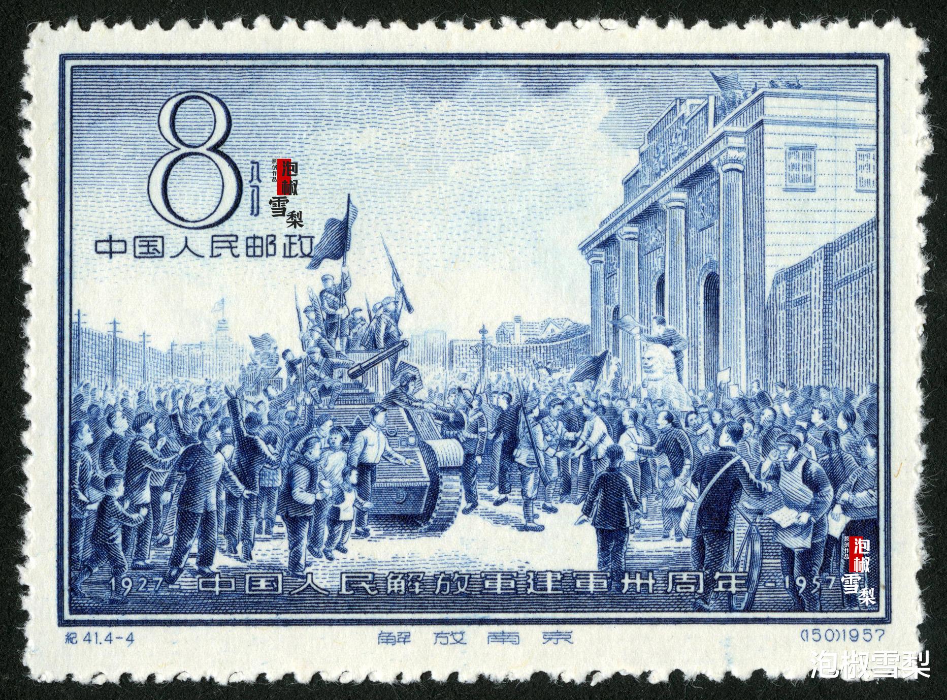1957年8月10日发行的“纪41”《中国人民解放军建军三十周年》则将“国”字进行了简化。