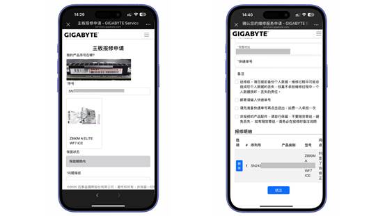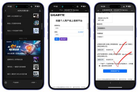 我发现除了网页报修之外,技嘉公众号也提供保修服务。为了方便更好上传图片,我选择从手机端公众号报修。