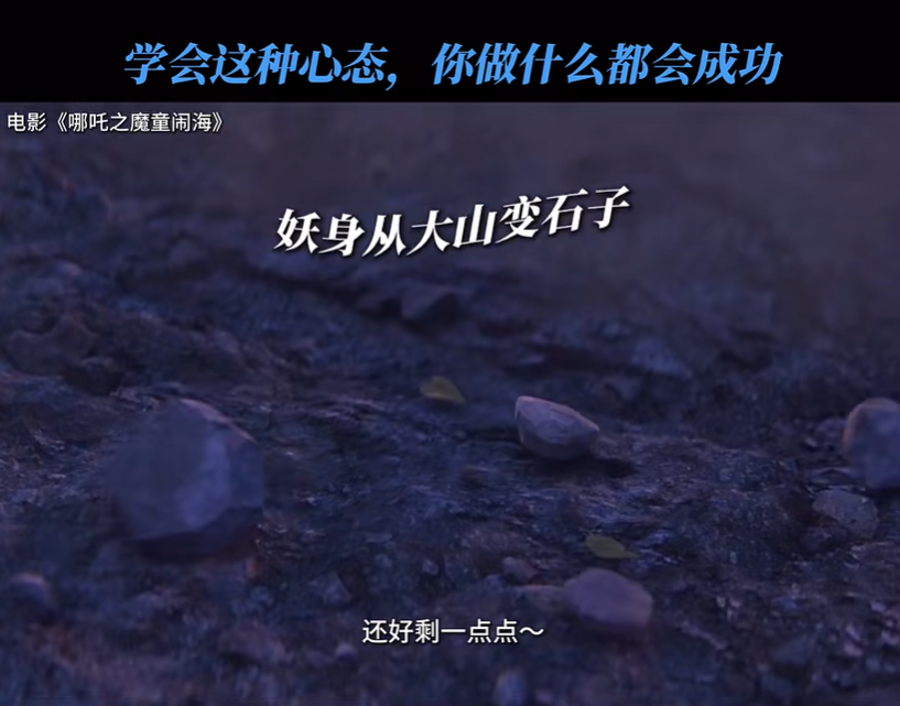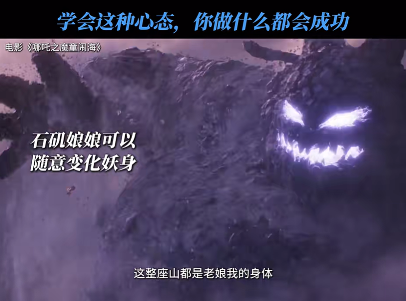拒绝内耗、秉持“舍得哲学”是石矶娘娘的又一治愈密码。面对哪吒的突然袭击,她被打得只剩几块碎石时,第一反应竟是庆幸“还剩一点点”,还插上两片叶子自我调侃“留得青山在,不怕没柴烧”。这种“半瓶水满”的豁达,戳中了现代人在“卷生卷死”竞争中的精神痛点。在现实生活中,人们总是在追逐“更多”,却常常忘记了“保全”的智慧。而石矶娘娘“圈地自萌”的生活态度,宅居山中,自娱自乐,不争不抢也不抱怨,更是对“功利主义”的无声抵抗。