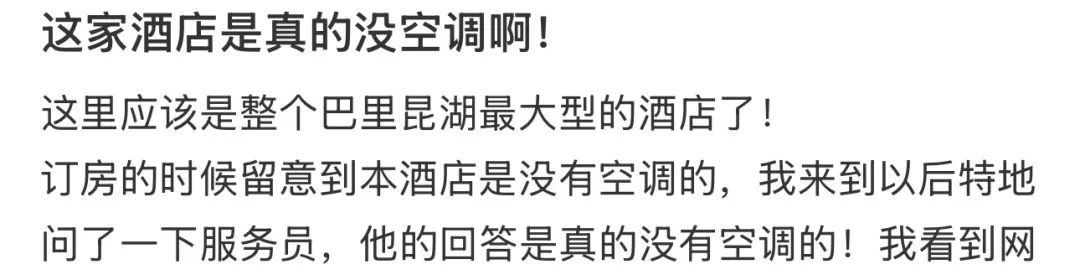 对于常年生活在中部平原的游客来说,“酒店有空调”就应该和“酒店有床垫”一样,是根本不需要在订房时额外确认的基础设施;