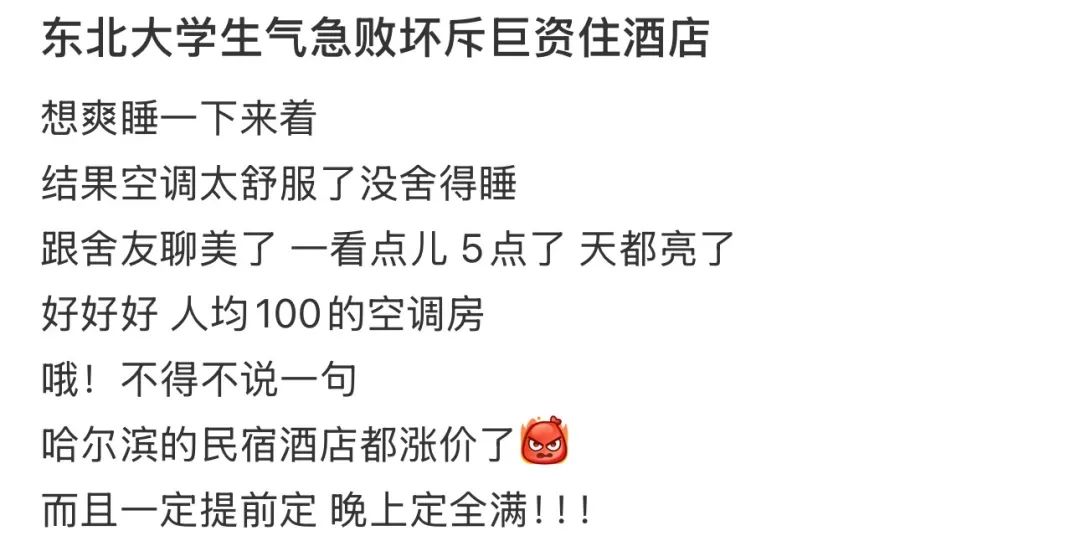 毕竟很多习惯延续到今天已经过时,比如东北较低的空调普及率已经不能从容应对今年的异常高温,比如现在大家对旅行住宿的体验感要求越来越极致;
