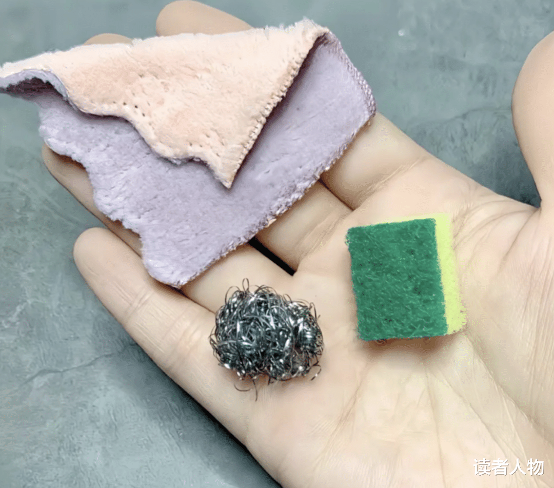 1元的厨房三件套,抹布、海绵擦、钢丝球,迷你到给小孩子玩过家家都嫌小。