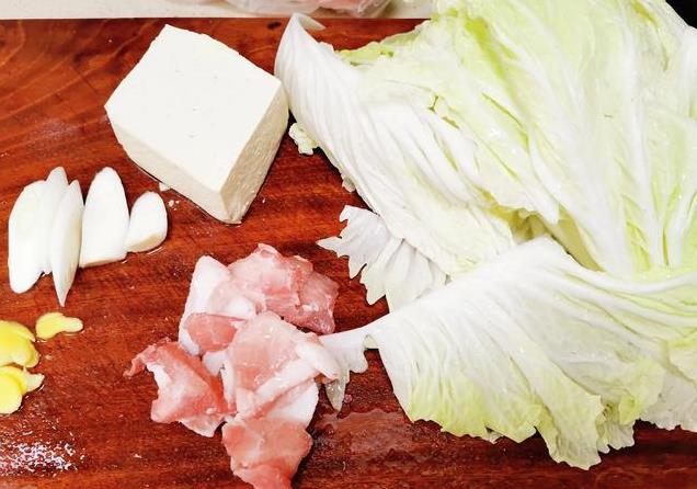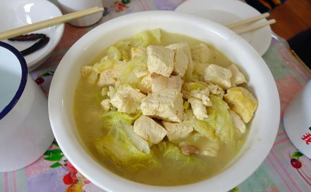 白菜炖豆腐在各地随处可见,食材也特别简单,老豆腐一块,白菜叶几片,五花肉几片,大葱,姜片少许,大白菜用手撕味道比刀切的好吃,没有铁味更鲜。