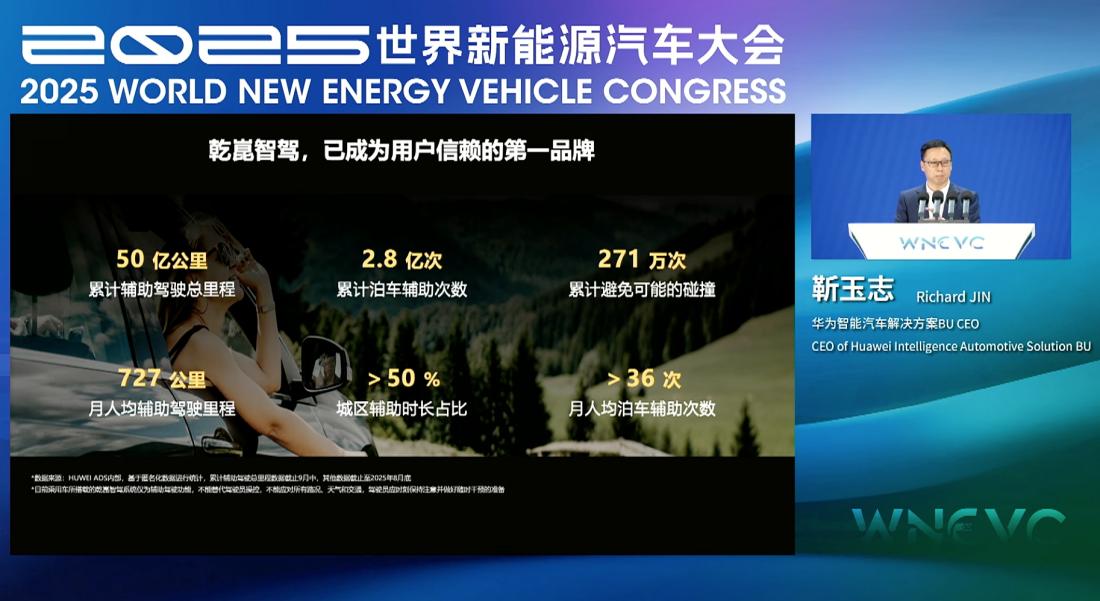 9月28日,由中国科学技术协会、海南省人民政府、科学技术部、工业和信息化部主办的2025世界新能源汽车大会(WNEVC 2025)在海南海口举行。华为智能汽车解决方案BU CEO靳玉志受邀出席“前瞻科技与融合创新”主题论坛,与来自全球的政产学研界代表分享了对汽车产业发展趋势的洞察,并介绍了华为乾崑智驾的最新进展。