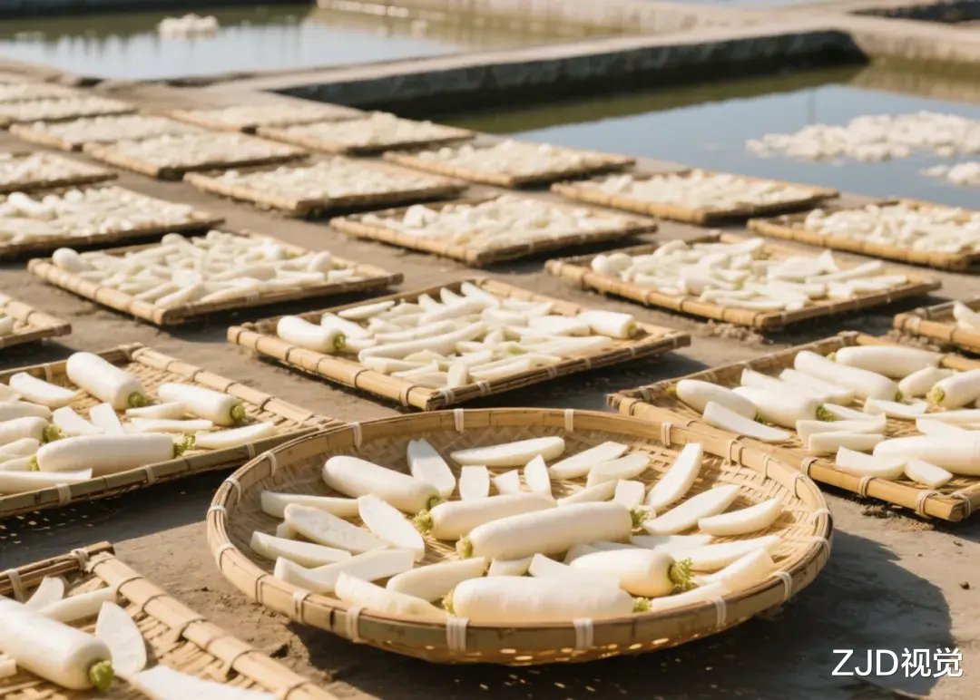 萧山萝卜干 萧山萝卜干起源于 19 世纪 90 年代,初以农家自食为主,20 世纪 20 年代始成商品。萧山萝卜干采用传统的“风脱水”加工法,经精细加工而成,以色泽黄亮、条形均匀、肉质厚实、香气浓郁、咸淡适宜、脆嫩爽口、味道鲜美而著称,谓“色、香、甜、脆、鲜”五绝。《中国土特名产辞典》载 :“萧山萝卜干,食之有消炎、防暑、开胃的作用,是早餐佐食之佳肴。”萧山萝卜干驰名中外,远销美国、澳大利亚、加拿大、日本、韩国、新加坡、马来西亚等国及中国香港、澳门、台湾等地。