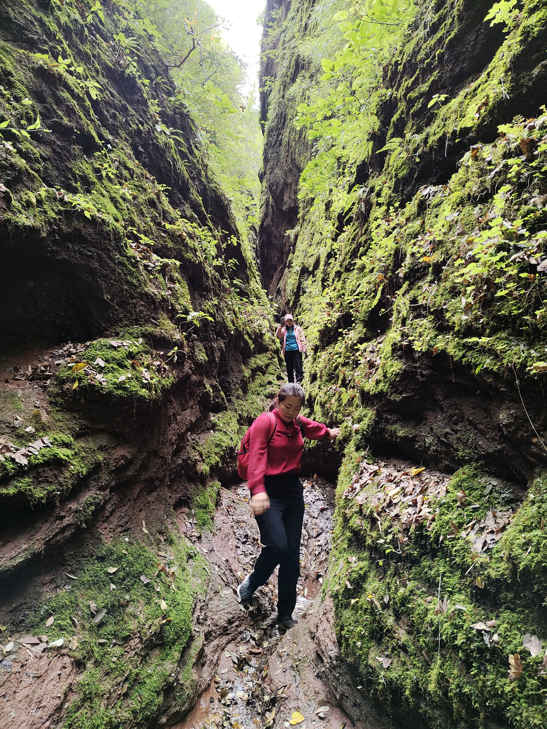 麦积奇观一线天,峰峦对峙陡崖悬。