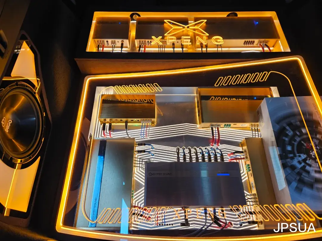 再看小鹏 P7+,作为一款新能源车型,它通过高端私人定制音响系统与改装艺术的完美融合,为车主打造出了超越豪车的 “移动音乐厅” 体验。