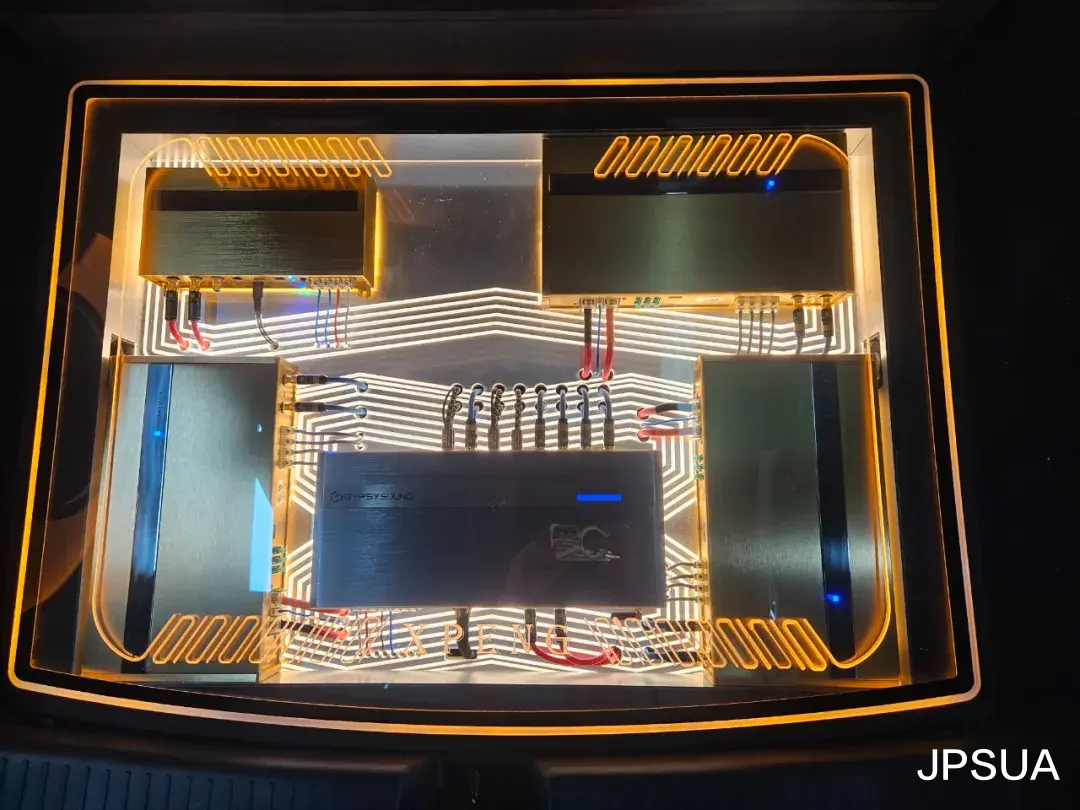 从定制方案细节来看,这套音响系统从音源到扬声器,再到功放和处理器,每一个环节都经过精心筛选与搭配,力求为车主呈现一场听觉盛宴。音源方面,选用 G60 发烧流媒体硬解码器,搭配手机或便携式播放器,有效保障音质的纯净与细腻,让每一个音符都清晰通透。