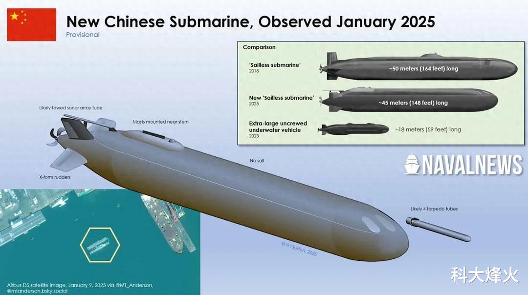 要说明的是,以上这些都是萨顿的猜测,认为是XLUUV的最大依据,看起来只是因为没有围壳这一点完全符合无人潜航器的特征。可能也是自知如此说法有些苍白,所以萨顿实际上更倾向于这是一艘适合在浅水海域活动的小型载人潜艇,可能配备的鱼雷发射管和拖曳式声呐阵列,可以用来攻击水面舰艇或潜艇,另一种可能是用来在海底执行特殊任务或输送特种部队进行渗透。