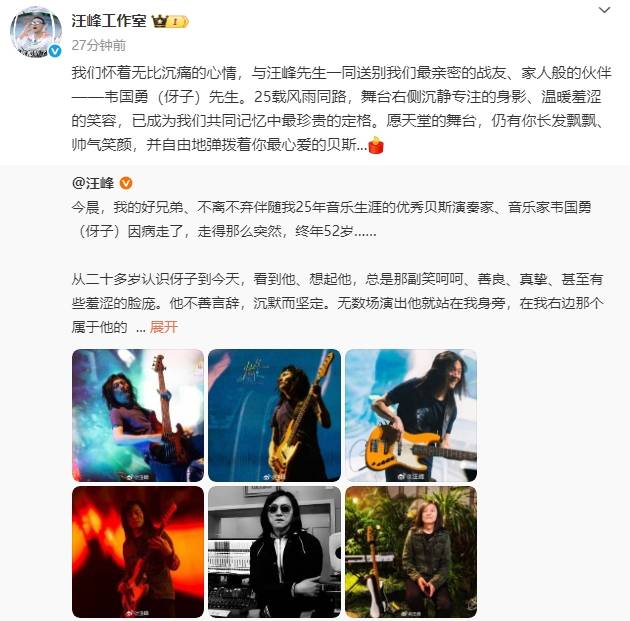 回溯二十五年风雨同舟,从无名岁月到万众瞩目,韦国勇那羞涩的笑容、沉静的身影,早已成为汪峰音乐版图中不可分割的坐标。人生难得一知己,当这样一位用四分之一世纪生命与你合奏悲欢的兄弟猝然离场,舞台中央的歌手又该如何独自面对那空荡的右侧,如何续写那未完的乐章?这无声的诘问,重重砸在每一位曾见证他们默契的人心上。
