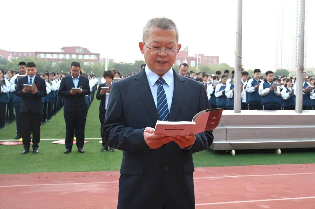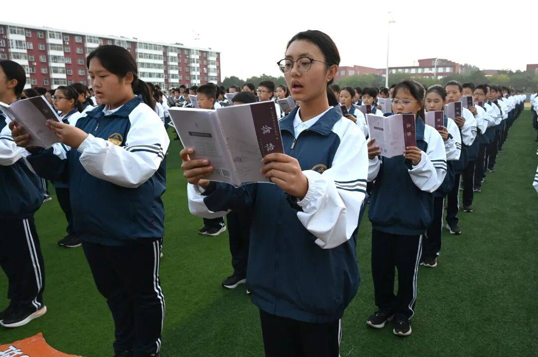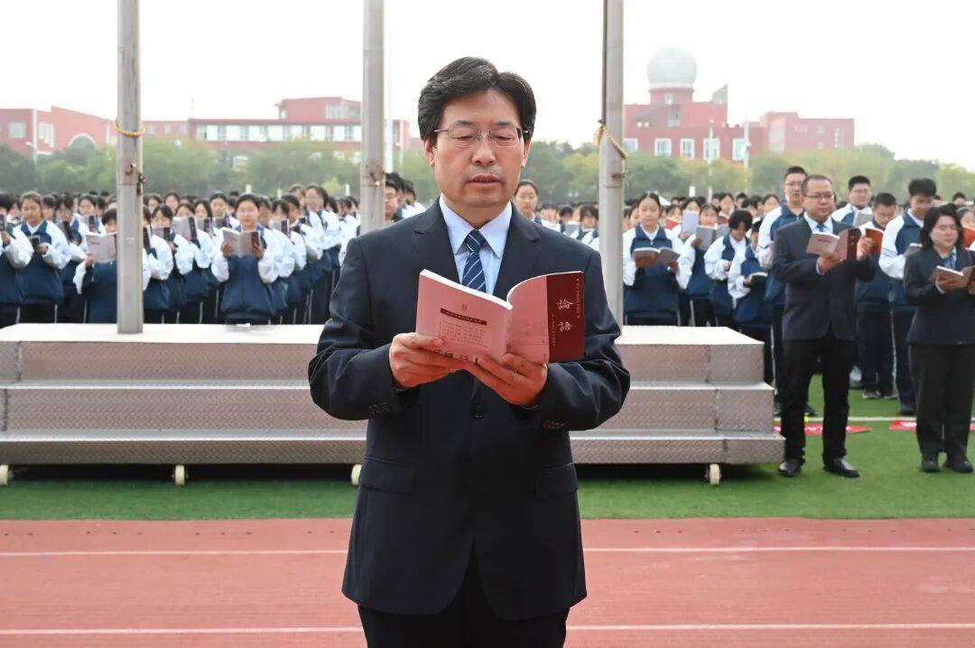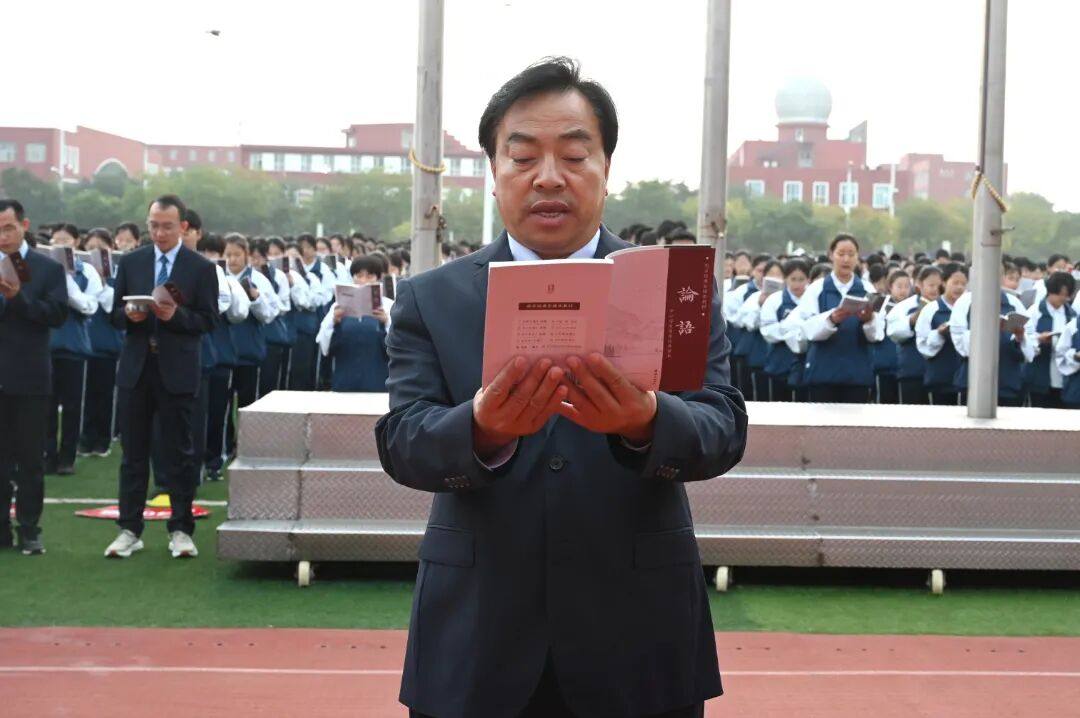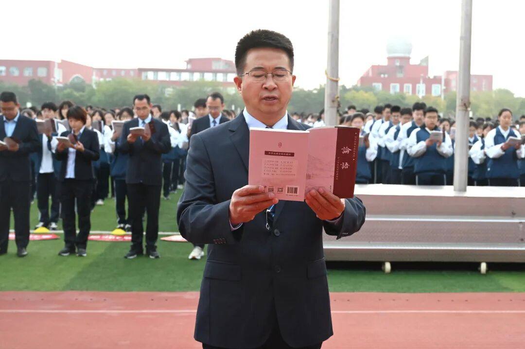 活动步入尾声,白永亮老师带领全体师生齐诵“为天地立心,为生民立命,为往圣继绝学,为万世开太平”。铿锵誓言响彻全场,既是对千年文脉的致敬,更向师生们发出号召——以经典为镜正言行,以文化为魂铸品格,为中华之崛起勤学不辍、笃行致远。伴随着《欢送进行曲》激昂的旋律,师生们有序退场,而经典的余韵始终萦绕耳畔,在每个人心中久久回荡。
