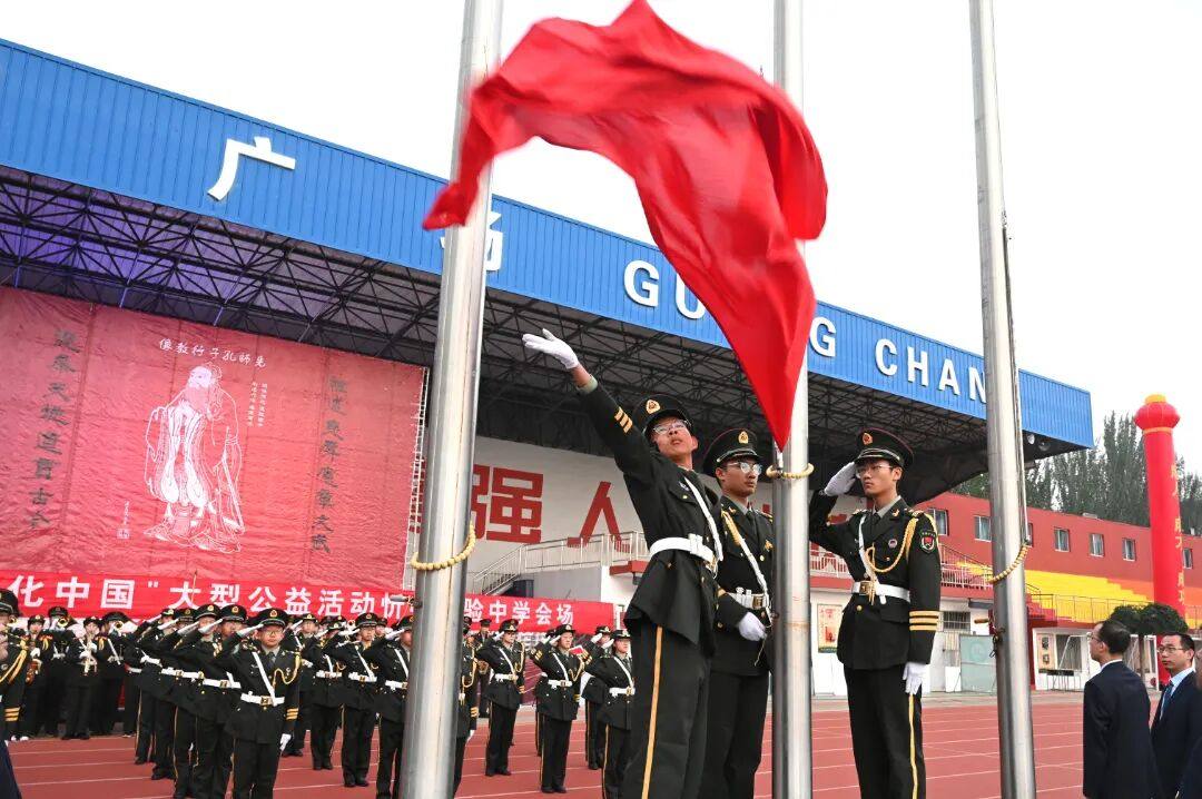 清晨六时十五分整,活动在庄严的升国旗、奏唱国歌仪式中拉开序幕。师生肃立,注视五星红旗冉冉升起,爱国情怀与文化敬意交融共鸣。随后,在司仪孟金松老师的带领下,全体师生面向孔子像行鞠躬礼,表达对至圣先师的崇高敬意。古乐《故宫的深思》悠扬响起,更添几分古韵与肃穆。