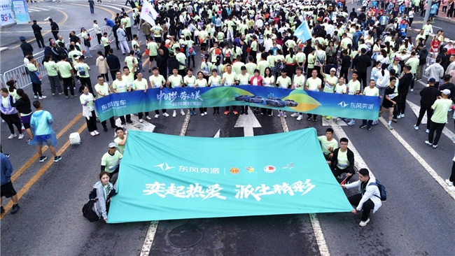 赛场上最引人注目的,当属由东风汽车工会、团委及奕派科技组织的50余名东风职工代表,以及涵盖用户、媒体、达人等300余名参赛选手的“东风奕派跑团”。在特色方阵展示环节中,他们身着统一奕派专属战袍,步履矫健,口号嘹亮,充分展现了新时代劳动者积极向上、团结奋进的精神风貌,成为赛道上一道亮丽的风景线。