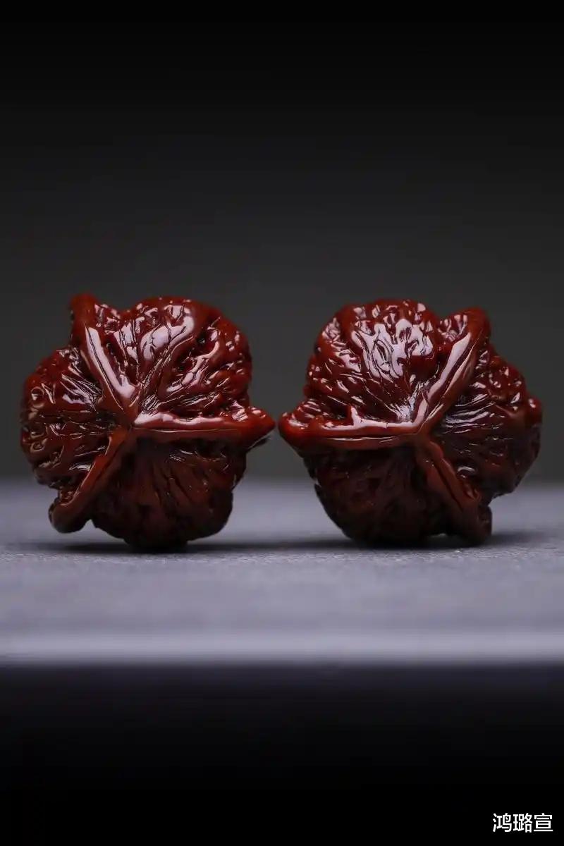 文玩核桃的盘玩,是一场与时间的对话。初时棱角分明、色泽生涩,但随着手泽浸润,油脂渗透,其表面逐渐形成如镜面般的包浆,色泽由黄转红,再转深紫,最终呈现出“紫檀色”般的沉稳贵气。更难得的是,核桃在长期盘玩中,还会产生微妙的“变声”与“润感”,触之如抚玉石。若能代代相传,其颜值与文化价值更将叠加升华,成为真正意义上的“文玩颜值巅峰”。