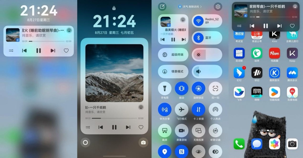 听音乐是很多同学返程途中打发时间的首选,像我平时用的酷狗音乐和QQ音乐,在鸿蒙5上的体验就超级方便。它们都支持“统一媒体播控”,不管是锁屏界面、下拉通知栏还是控制中心,都能随手调节播放进度、切换音乐,操作灵活又顺手。