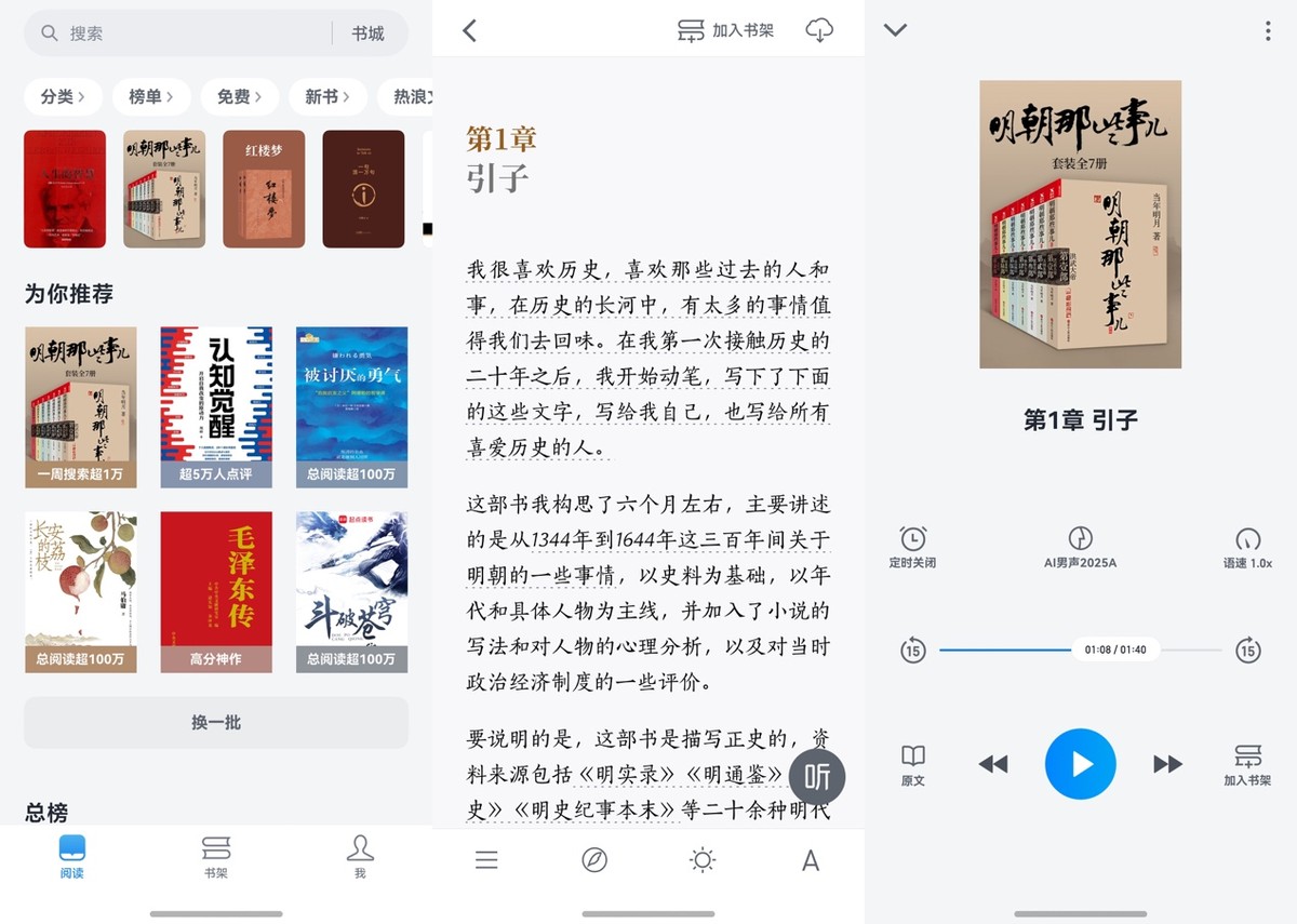 习惯在途中读书的同学,不妨也来试试鸿蒙版微信读书。有时候晕车难以一直盯着屏幕,可以用它来听书,它能把文字内容转成朗读音频,还支持定时关闭,既能“读”书又不耽误休息,一举两得。