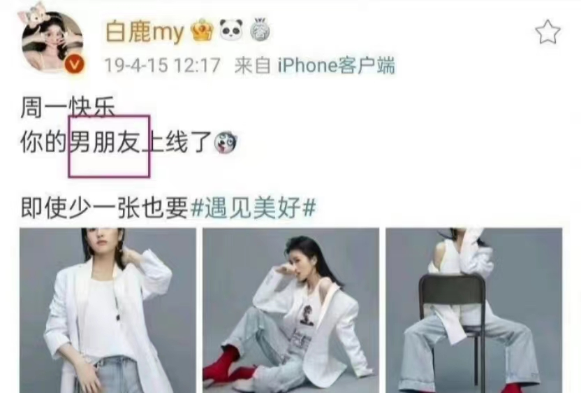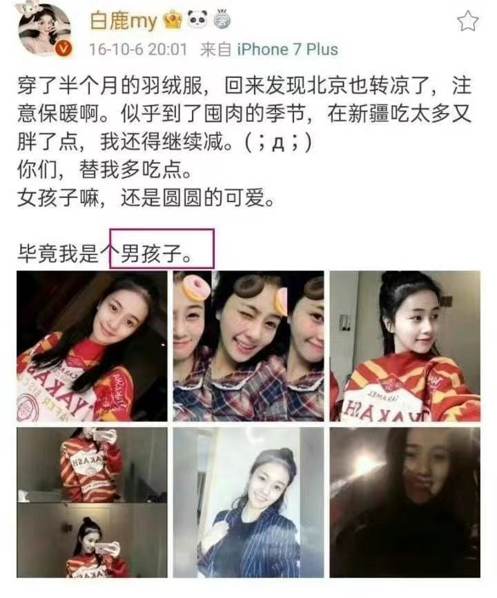网友们还扒出了白鹿在各种公开场合的相关言论。比如她一直经常在微博上以“男的”来称呼自己。