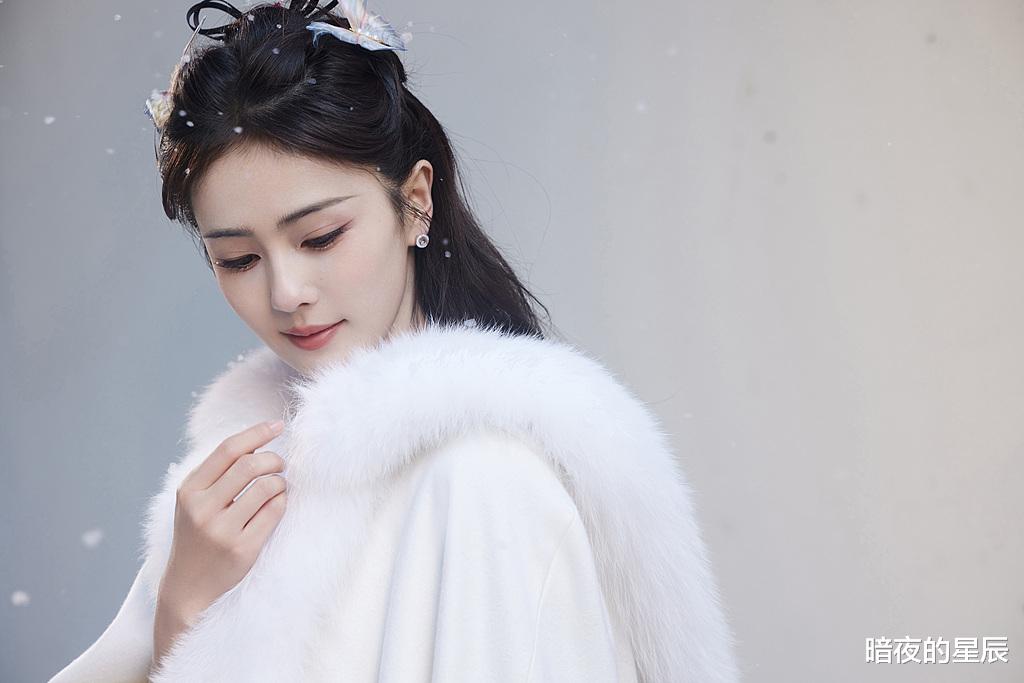 我穿着一身干练的白色西装,长发挽起,妆容精致。