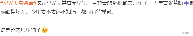 说到底,就是电视剧,一年不如一年了,即使前辈们不再在乎这些虚名,年轻人也鲜少有扛得起大旗帜的存在,这就是无聊。大家看的,从不是简单的红毯比美。