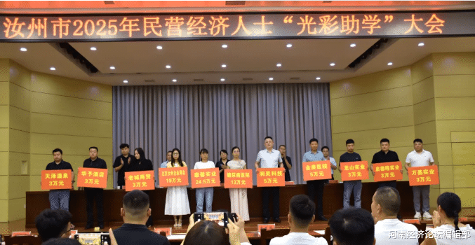 8月20日,汝州市举办2025年民营经济人士”光彩助学”捐助仪式。企业家代表们现场捐助学生,学生代表作发言,表达感激之情和立志成才的远大理想。