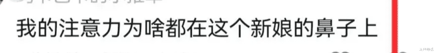 值得一提的是,新娘虽面容姣好、颜值颇高,但其鼻子却成了网友关注的焦点。从侧脸观察,新娘的鼻子又长又突出,乍一看,着实十分抢眼,令人惊愕。