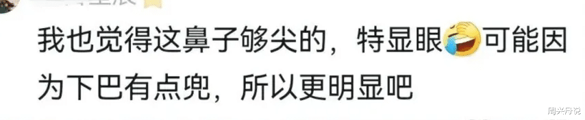 也有网友调侃,新娘仿佛如同匹诺曹说谎后变长的鼻子,她的下巴也稍显兜翘,愈发显眼抢镜,真怕两人亲吻时,鼻子会抢先坏了大楠的好事。