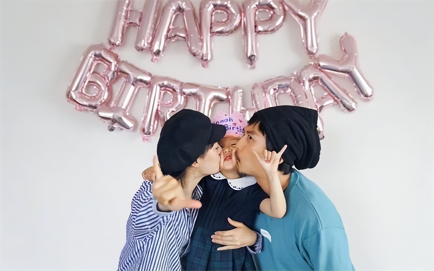 每年生日,夫妻俩都会左右夹击,把对女儿满满的爱意化作亲吻,印在小花的脸上。