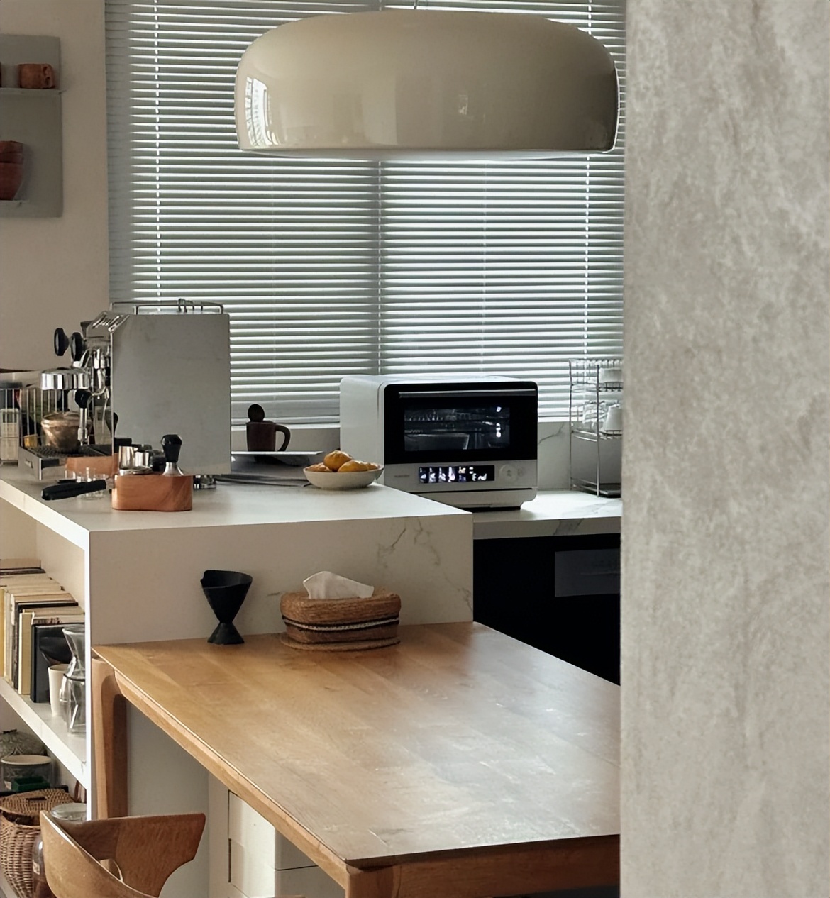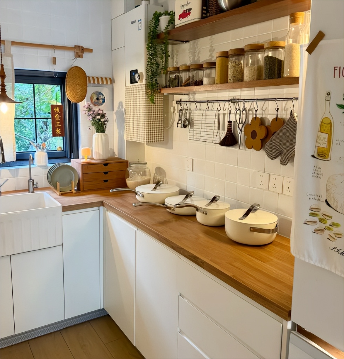我家装修的时候没有预留出收纳汤勺、锅铲的区域,又不想挂在墙面上。