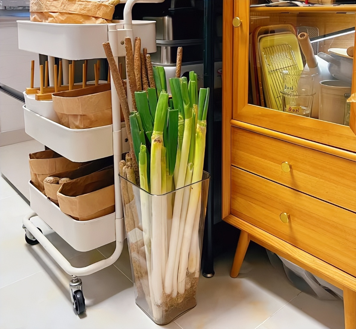 每次往家里买大葱、山药这种食材,收纳就成了大问题。