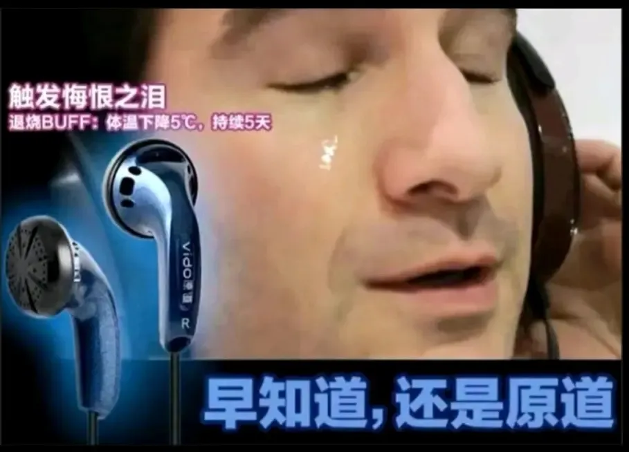 真对音质有要求,那就多花几块钱去买原道的平头耳机,十元以上千千万,十元以内它无敌,还可触发被动技能——悔恨之泪,有让发烧友退烧之神奇功效。