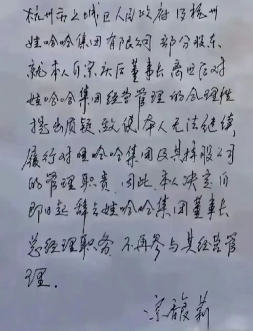 宗大小姐的亲笔信,娃哈哈、娃小宗、娃小智,这背后到底是什么样的乱局