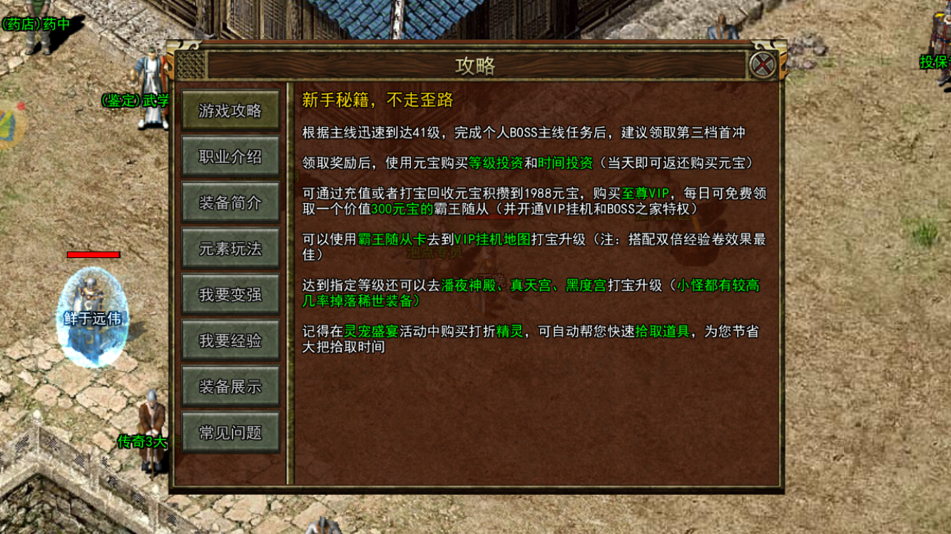 装备选择需针对性匹配 BOSS 属性:面对火属性攻击的 BOSS(如祖玛教主),需全员配备火抗性装备,降低伤害承受;若 BOSS 物理防御极高(如触龙神),法师应换上高魔法攻击武器,战士则侧重破甲属性。道具方面,必备强效金疮药、魔法药等基础补给,同时携带对应抗性药剂(如抗火药剂、抗毒药剂),在 BOSS 释放大范围技能前提前使用。