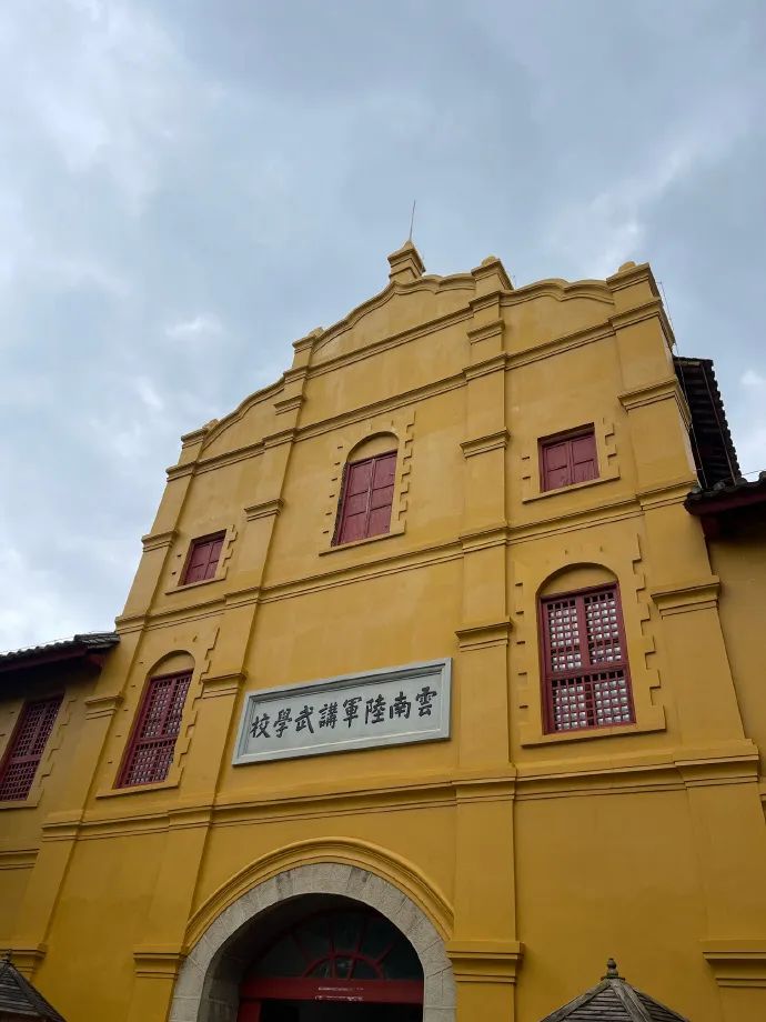 1907年,云南陆军讲武堂破土动工,历经两年的精心筹备与建设,终于在1909年9月26日(阴历八月十五中秋节)正式开学。校址选在昆明原明朝沐国公练兵处,占地面积达7万余平方米,分为南部练兵大操场和北部建筑设施两部分。现存的主要建筑包括主楼、大课堂(礼堂)和兵器库,占地面积近3万6千平方米,被形象地称为“走马转角楼”。