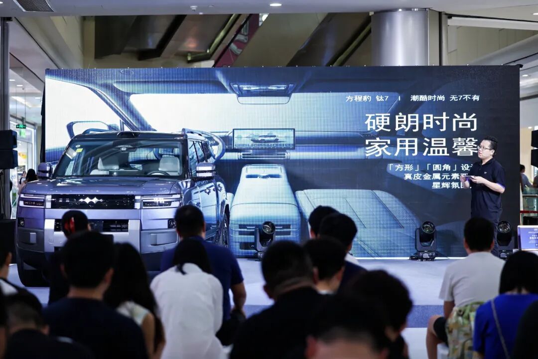 在万众期待中,姜颖俊先生与陈祺先生共同为钛7揭幕。作为方程豹钛系列的第二款力作,钛7以集硬朗外观、舒阔空间与智能科技于一身的卓越产品实力,惊艳全场,标志着“科技大空间SUV”正式登陆杭州市场。