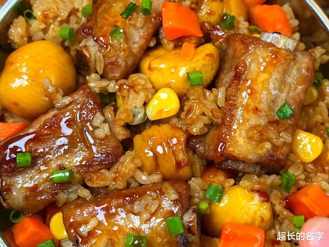天冷馋这口!板栗排骨焖饭,暖糯咸香,吃完超满足