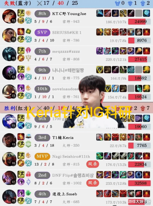 这个英雄原本是标准的上单位,几乎从未出现在下路位置,但在 Keria 手中,他带上“启封的秘籍”天赋,利用高坦度与控制能力为队伍开团,居然打出了不俗的效果,此外,他还尝试了打野英雄蔚辅助的套路,虽然战绩不错,但打法风格极为激进:带“丛刃”与“引燃”,全输出出装,看起来更像是个“下路打野”,而非传统意义上的辅助。