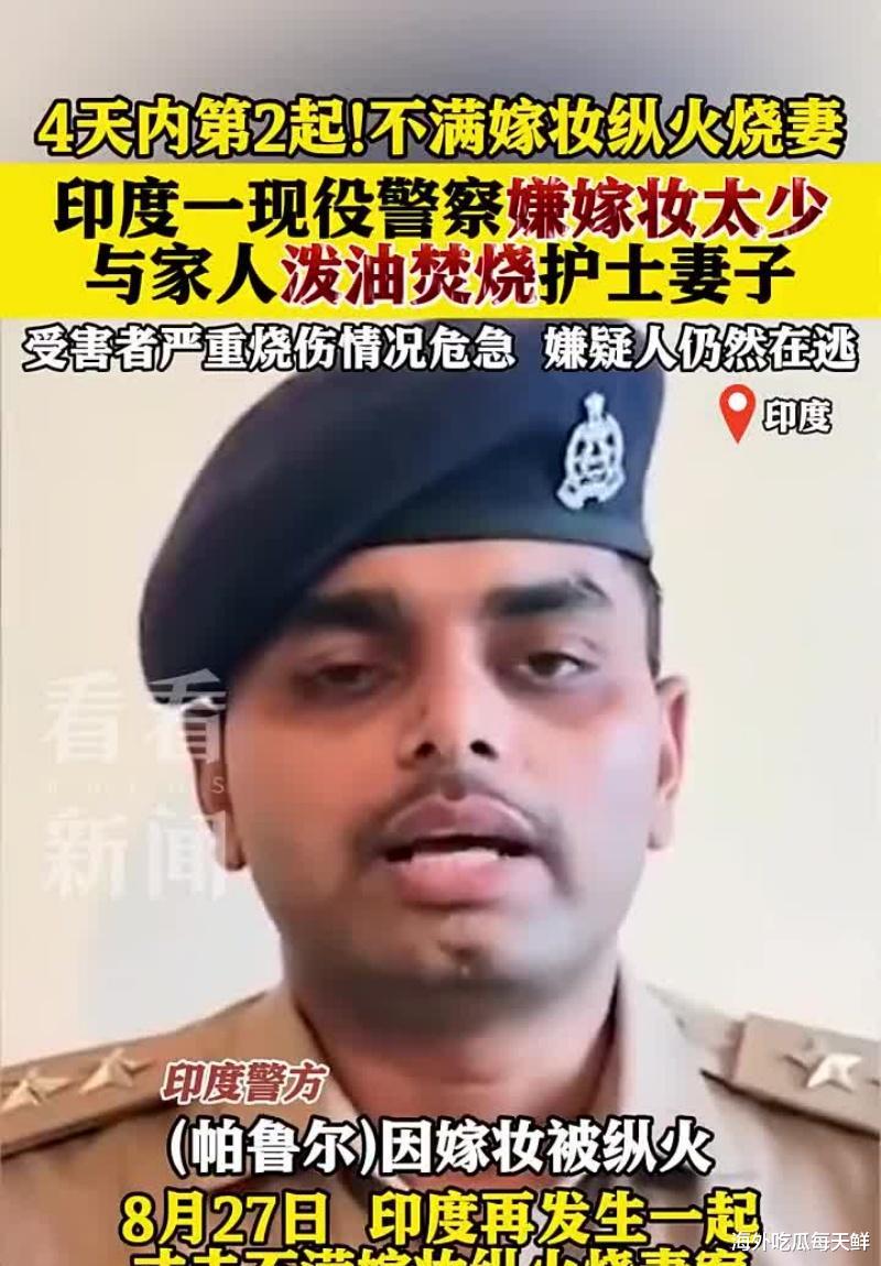 印度北方邦阿姆罗哈县,2025年8月27日——在短短四天内,印度再次发生一起因嫁妆问题引发的恶性事件。8月27日,一名现役警察因对妻子嫁妆不满,伙同其母亲及四名亲属,对妻子实施纵火行为,造成妻子严重烧伤。这起事件发生在印度北方邦阿姆罗哈县,再次将印度的嫁妆问题推向舆论的风口浪尖。