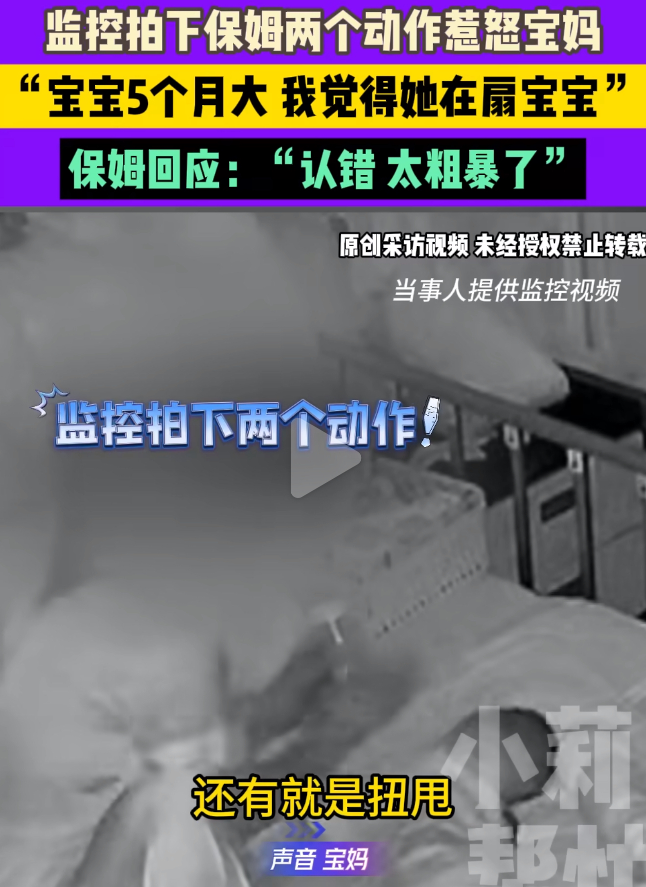 这不是个例。重庆26天的新生儿被月嫂掐脖子、打耳光;大庆5个月的婴儿被保姆抡摔致夜惊;甚至有8个月大的宝宝被两小时内暴打十几次,直接成了脑瘫……这些案例里,保姆的“失控”总被归结为“心情不好”“情绪差”,可婴儿的哭声是求救信号,不是发泄情绪的开关!当成年人连“不打孩子”的底线都守不住,还配谈什么“专业”?