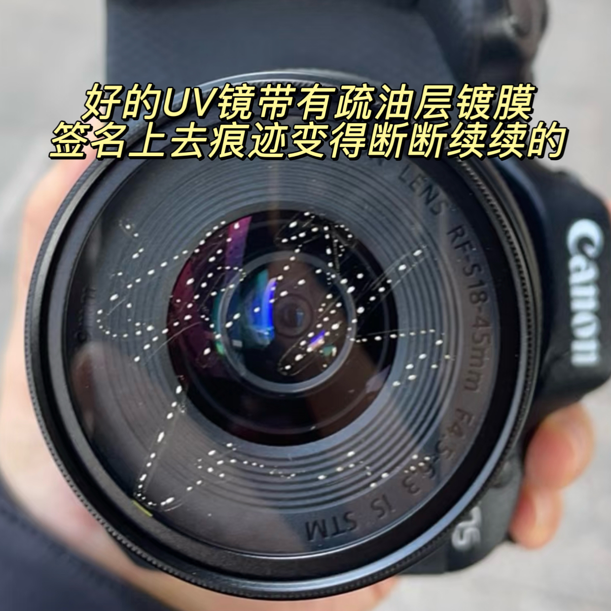特别是贵的UV镜,有疏油层镀膜的,签出来的签名难看还不明显。
