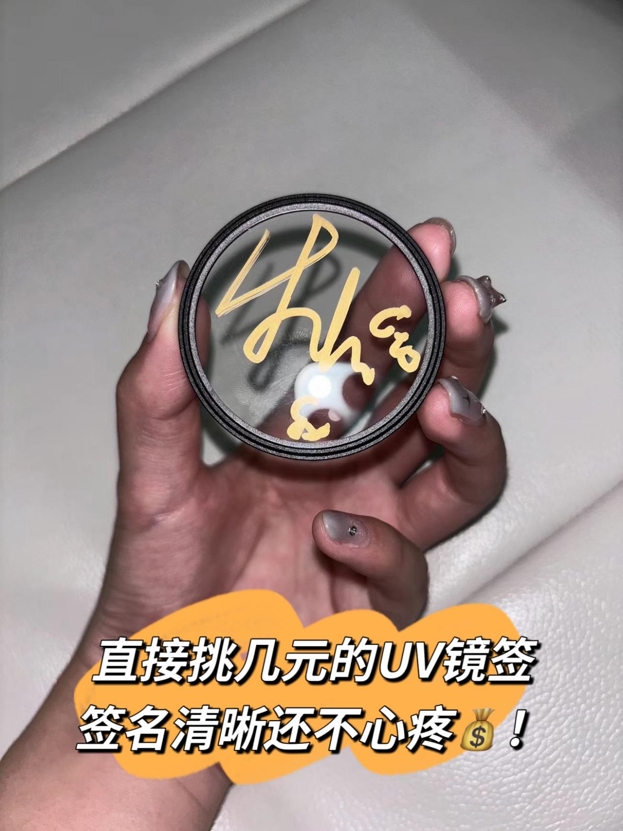 否则你就会发现根本写不上!特别是贵的UV镜,有疏油层镀膜的,签出来的签名难看还不明显。其实就买简单的几块钱的UV镜就好了