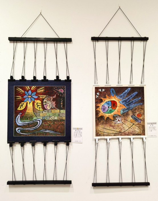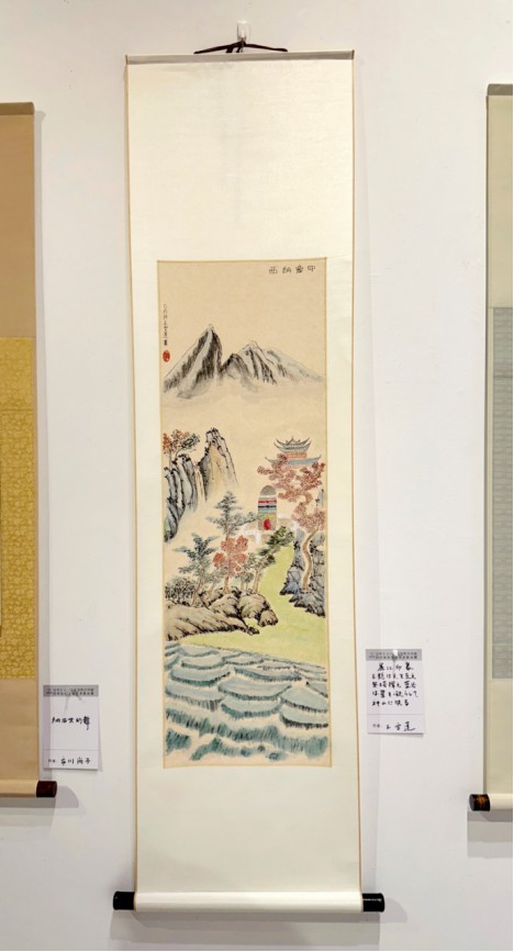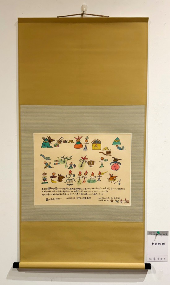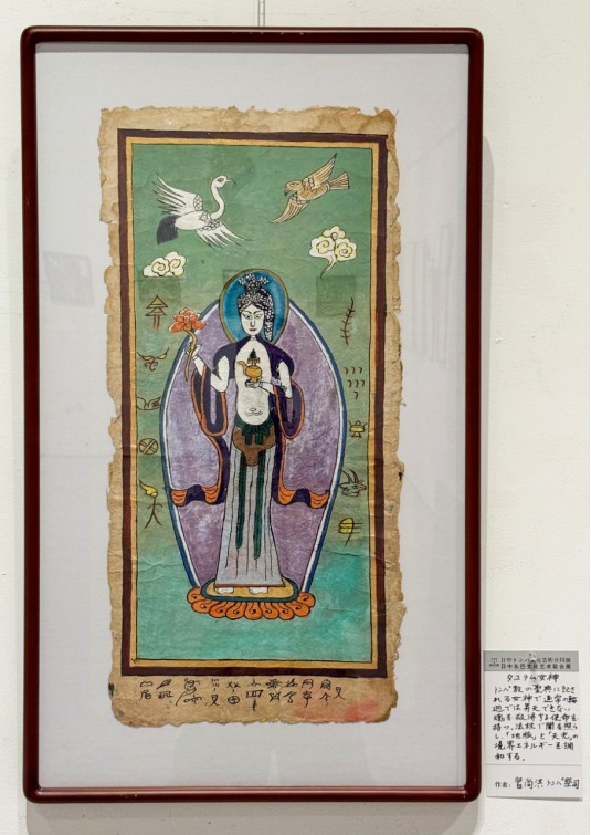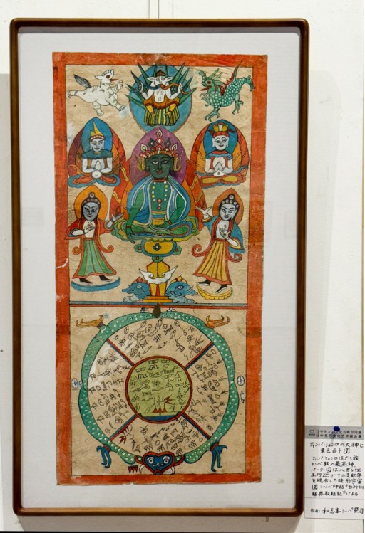 ADCA和岐阜清风水墨画会两会艺术家创作的东巴绘画作品和谐地混挂在一起