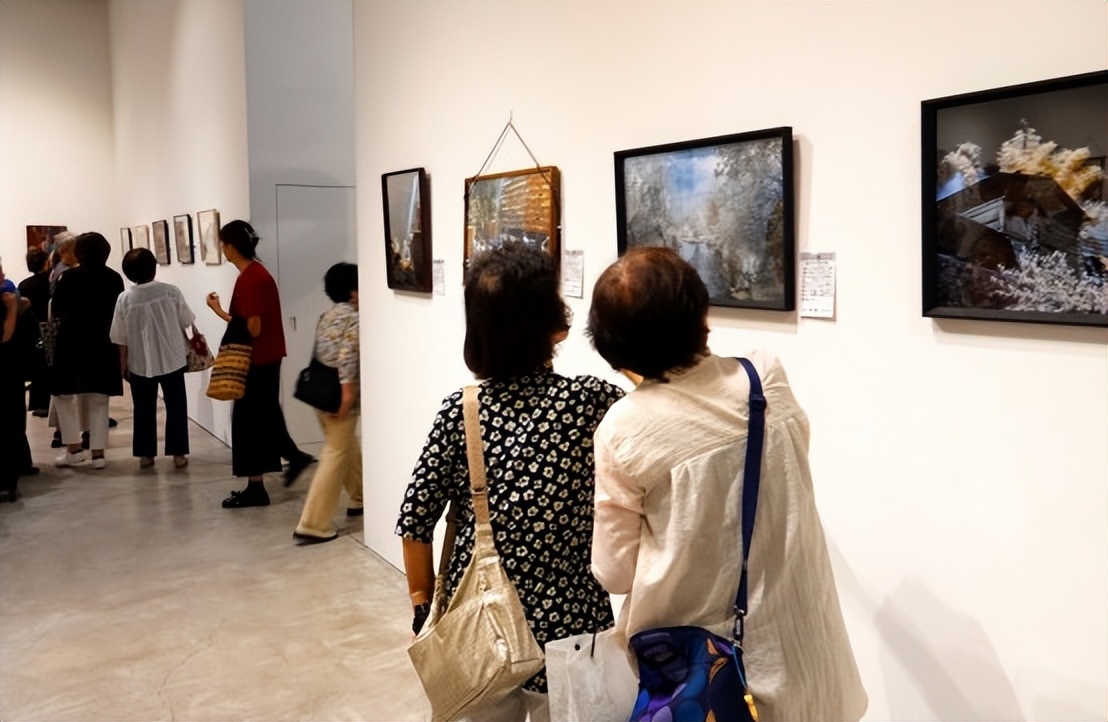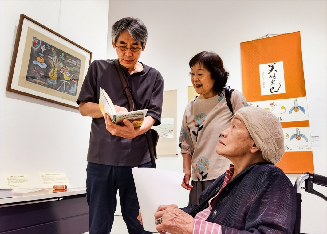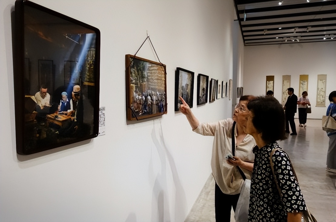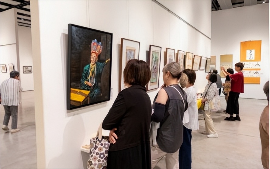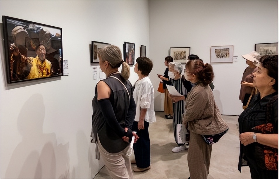 日本观众长时间驻足在ADCA会员们的作品和两位老东巴的绘画前