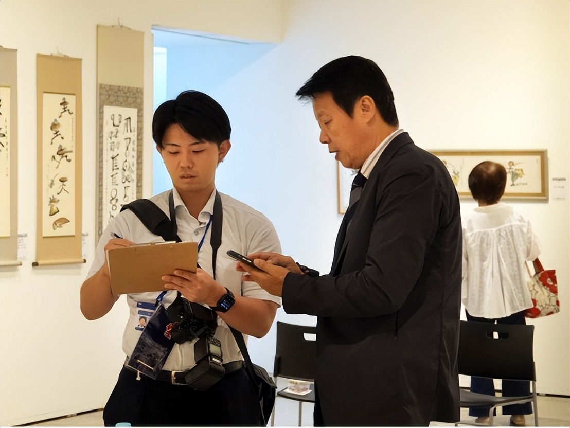 展览发起人、清风水墨画会讲师暨ADCA理事刘悦东先生向记者介绍了活动的起源并表示:“此次联合展与张旭·塔尤拉姆会长筹划了很久,并克服了各种困难,初衷就是希望我们水墨画会的学员们和我们ADCA的会员们能在岐阜共同展出以东巴文化为主题的创作,为保护和传承中国纳西族东巴文化做一份贡献。