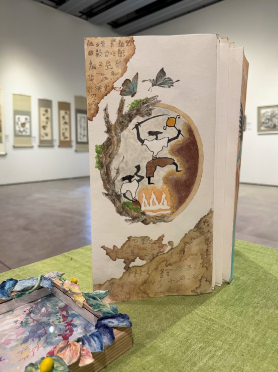 展品还包括了日本、中国及西方学者在纳西学领域的研究专著,体现了东巴文化国际研究的历史脉络。东京国学院教授、纳西学研究者黑泽直道先生参展著作《崇仁利恩的故事:东巴讲的云南纳西族洪水神话》获得广泛关注,他评价道:“东巴文化艺术展览很有规模,兼具学术性与社会性,太成功了!展览表达了北京东巴文化艺术发展促进会老师们的不懈努力和对纳西文化的热爱!