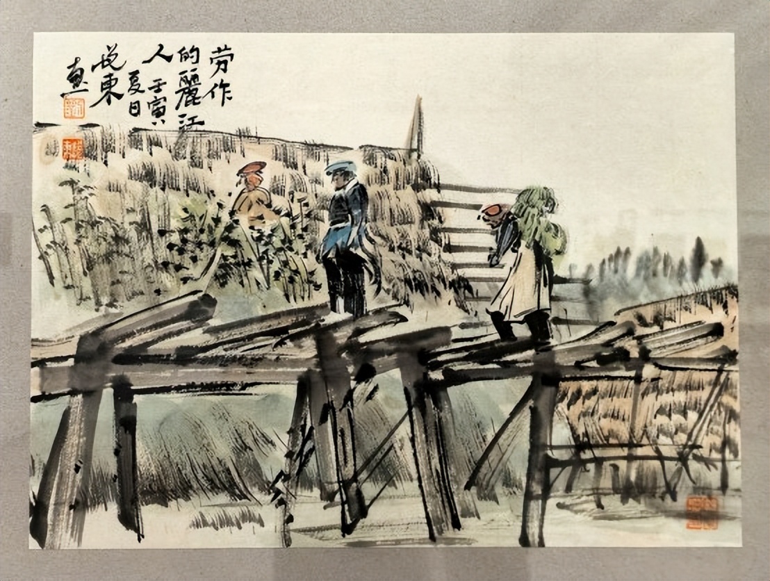 刘悦东先生关于纳西民俗的水墨画系列作品之一《劳作的丽江人》