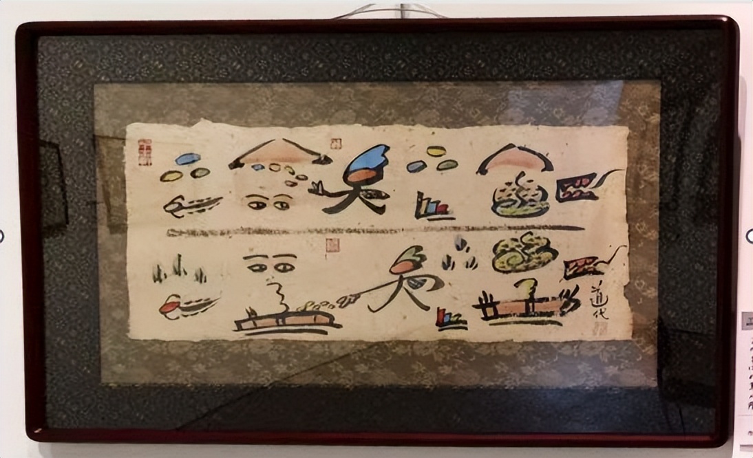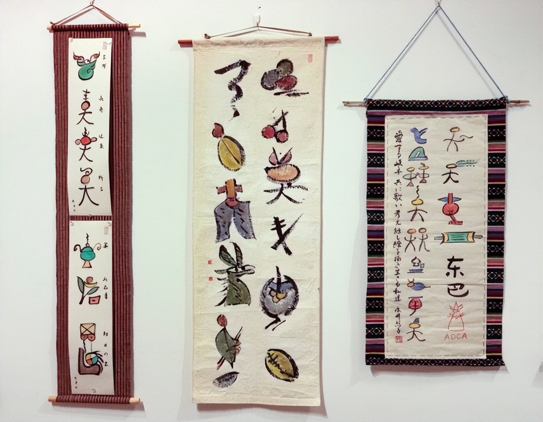 刘悦东先生用东巴文书写的“北京东巴文化艺术发展促进会”呈现在展厅