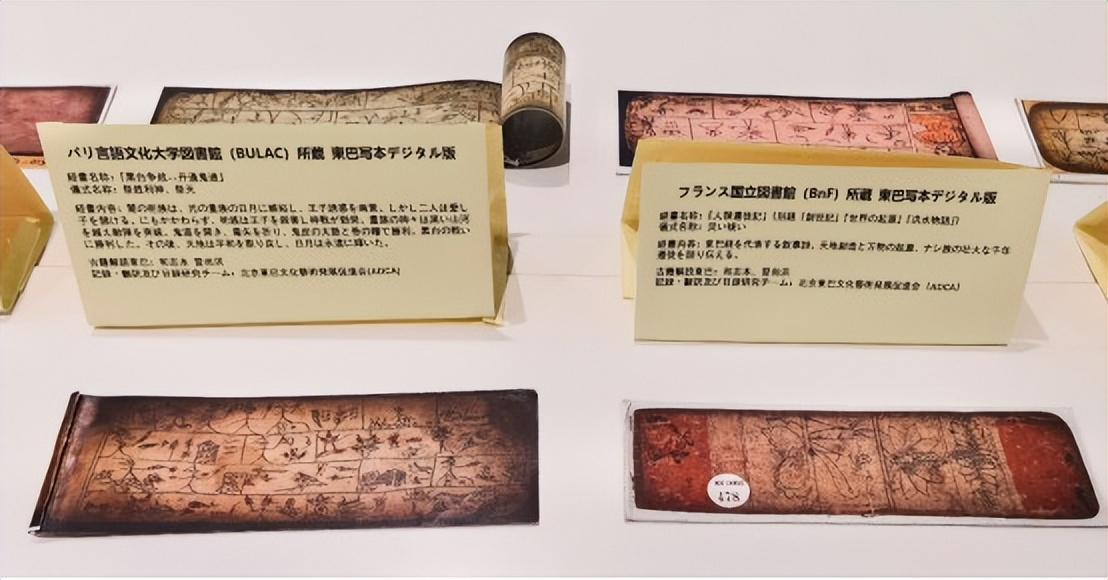 各国数字化的东巴古籍馆藏包括东巴经中三大史诗《创世纪》藏于法国国家图书馆(右前);《黑白争战》藏于法国巴黎语言文化大学(左前)等