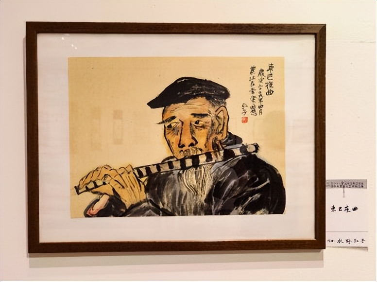清风水墨画会水野弘子所画的纳西族古乐的吹笛老者